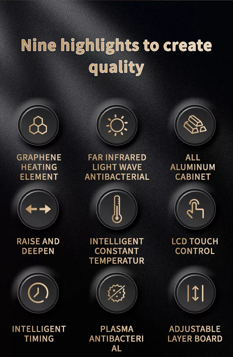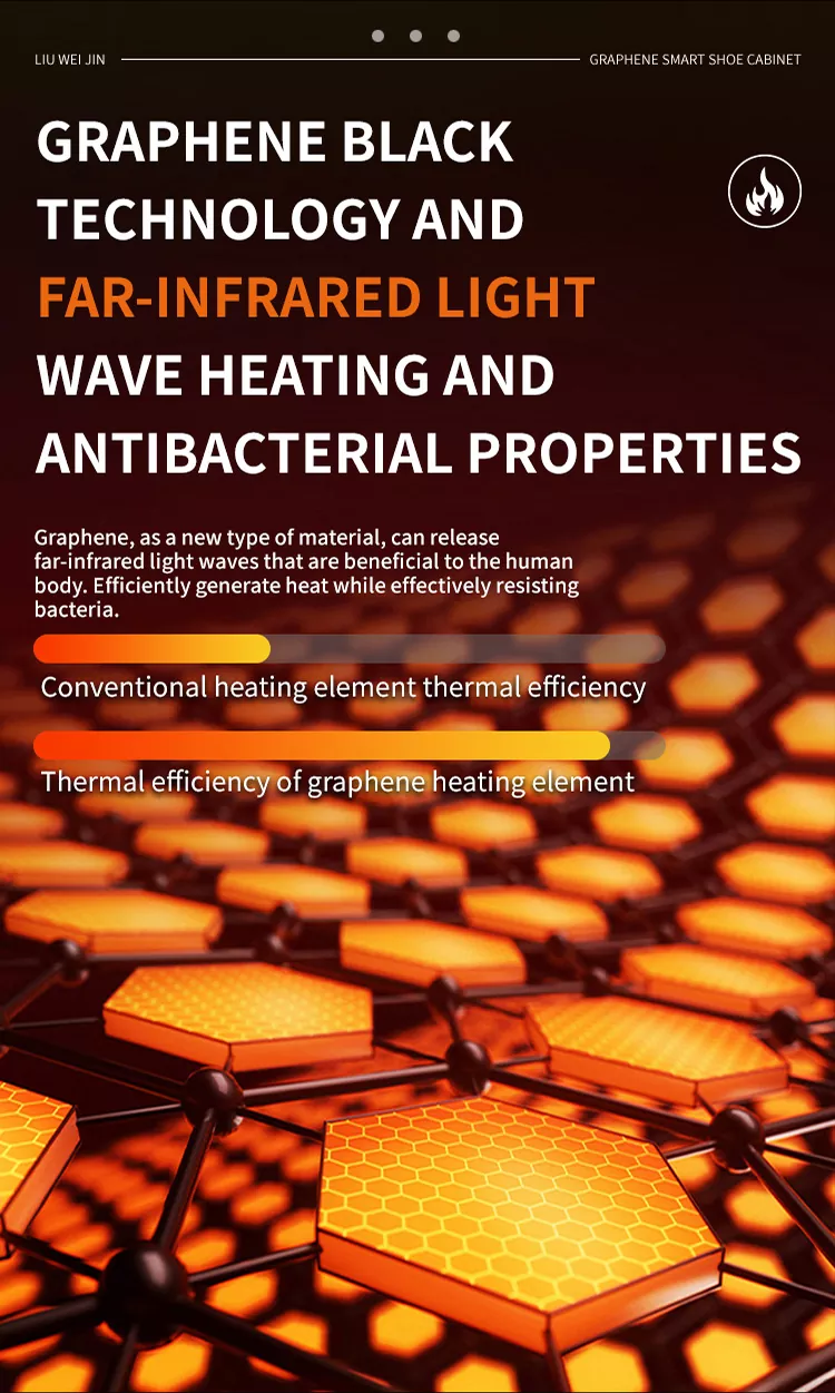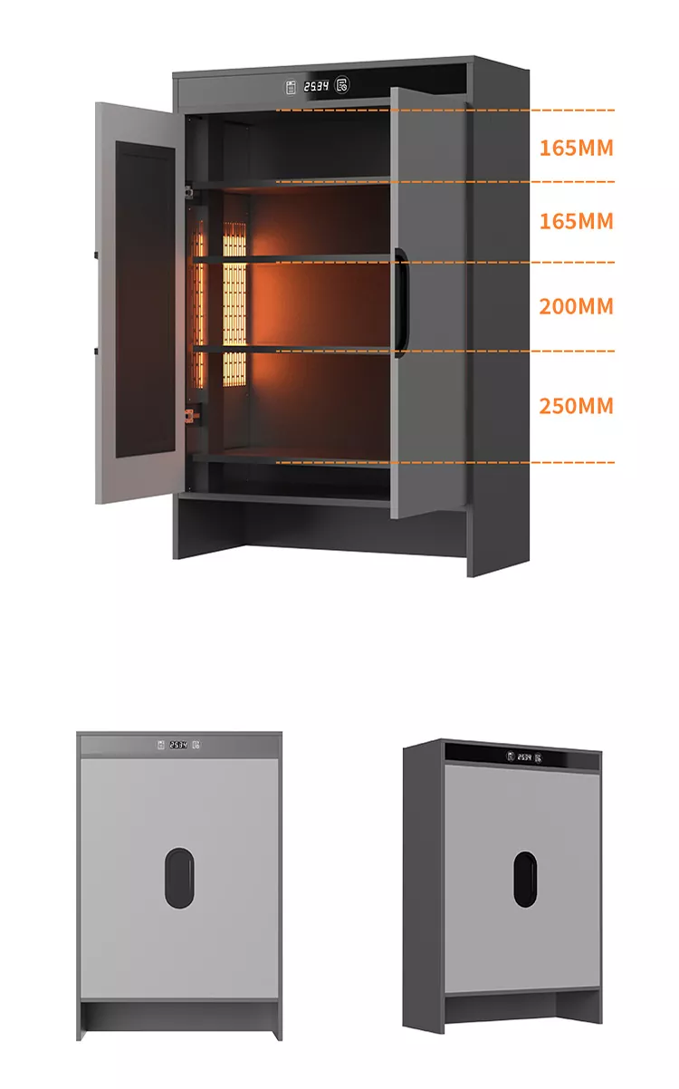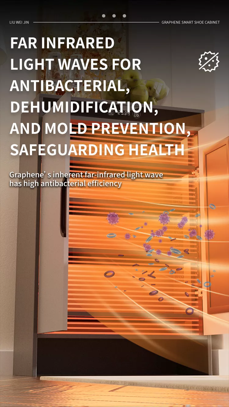 Ta szafka na ogrzewanie grafenu Liuwei Jinshi Electric Ogrzewanie suszenia wykorzystuje element ogrzewania grafenu i aluminiowy korpus szafki do obsługi inteligentnego rozmiaru. Rozmiar jest dostosowany, a laminat jest regulowany. Element ciepła grafenu uwalnia falę światła dalekiej podczerwieni w celu skutecznego odporności bakterii, dezodoryzowania i szybkiego sucha. Dodatkowo istnieje moduł oczyszczania jonów do wyeliminowania zapachów.