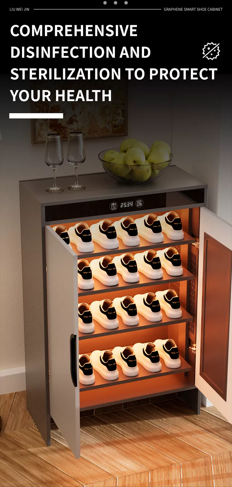 Najnowsza grafen elektryczna szafka na buty do suszenia rozkładania czasu opracowanego przez Liuweijin zapewnia bezpłatną wymianę i roczną zdalną gwarancję. Cała szafka na buty jest wykonana z aluminium platformy miodu, która nie jest spleśniona i łatwa do zadbania. Element grzewczy przyjmuje element grafenowy elektryczny element ogrzewania, który jest szybko podgrzewany i suszony na poziomie MiliseCond, i jest daleka od lampki, aby wyrównać lampkę strefową do strefy steilizacji i strefy steilizacyjnej, i i i steilizacji. Dezodoryzować. Szafka na buty ma swobodnie regulowaną przestrzeń do przechowywania, każdą warstwę półki można usunąć osobno, a szafka ma ekran wyświetlacza ciekłokrystalicznego. Może zakończyć działanie wyświetlania temperatury i inteligentnego rozrządu. Susz butów, odporaj na bakterie i dezodoryzować i chroń zdrowie stóp.