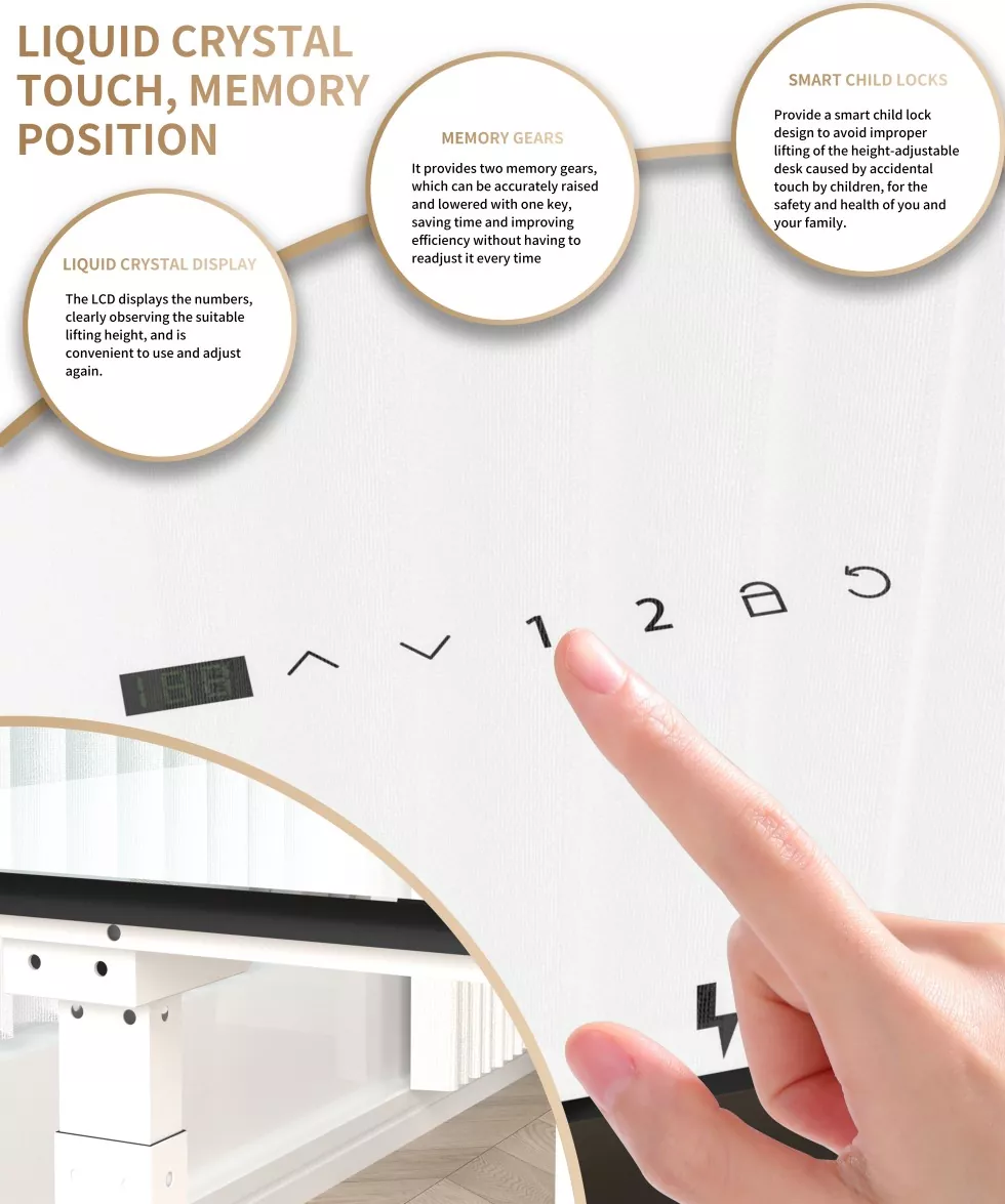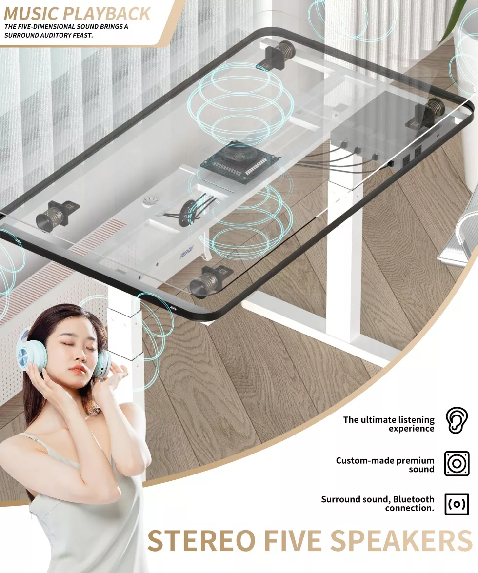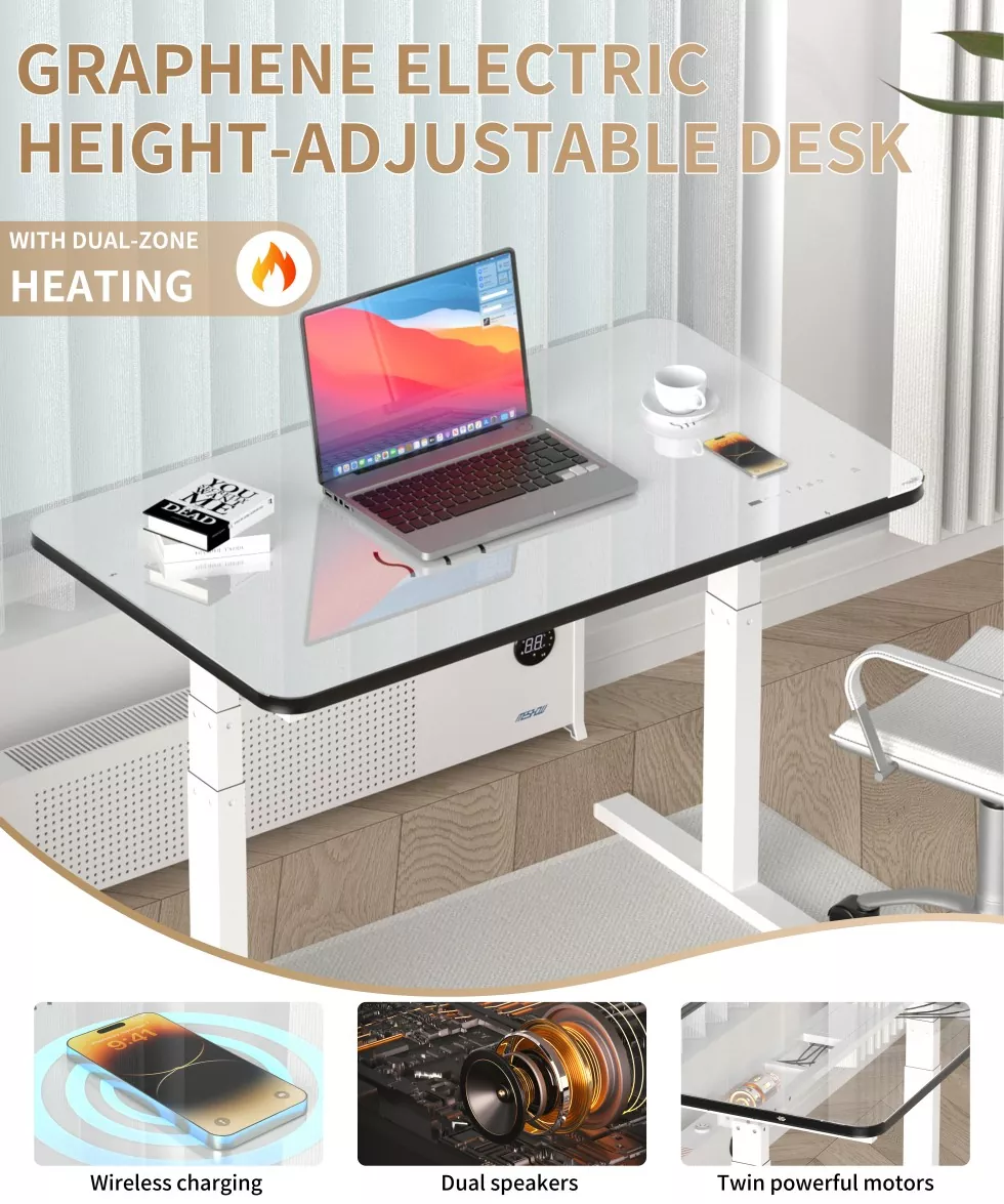 Meshow wydał wysokiej jakości białą szklaną płytę podwójną elektryczną, wykorzystując najnowocześniejszą podwójną technologię silnika, aby zapewnić gładkie, szybkie i ciche podnoszenie. Desikt jest wykonany z wysokiej jakości materiału białego szklanego, który jest gładki i trwały, integrując nowoczesną estetykę, łatwa do czyszczenia i odpowiednia dla różnych środowisk biurowych. Pracując w pozycji stojącej lub siedzącej, elektryczny stół do podnoszenia jest ergonomicznie zaprojektowany w celu skutecznego łagodzenia problemów zdrowotnych spowodowanych długotrwałą pracą.